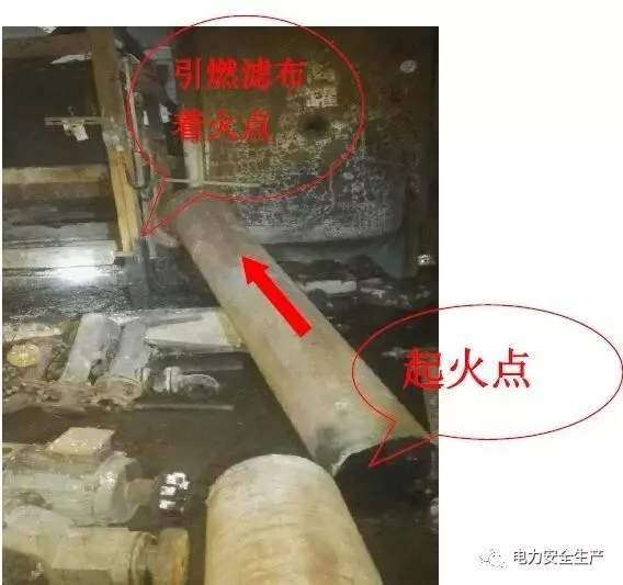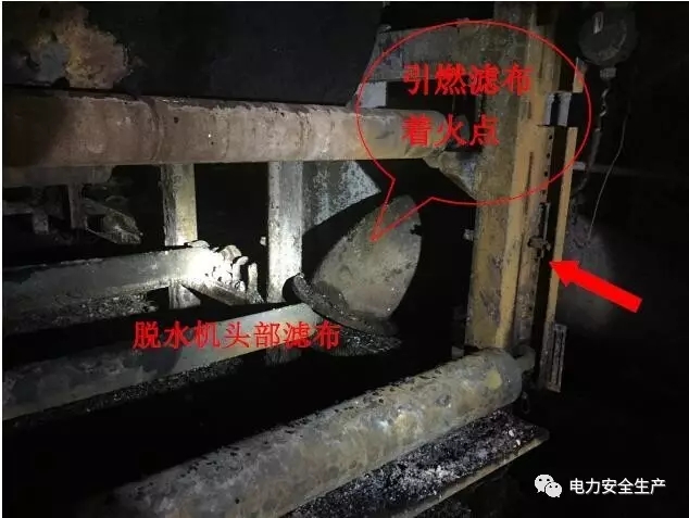 9 月1 日11 時47 分,#1 真空皮帶脫水機(jī)辦票拆除改造(施工單位為同煤環(huán)保)。9 月3 日15 時30 分左右,施工單位拆除真空泵到汽水分離罐連接管道,用倒鏈將管道固定后將該管道兩頭法蘭連接拆開,由于管子較長(7 米左右),現(xiàn)場位置狹窄,無法將管道放至地面,15 時45 分左右施工單位采用氣割辦法從管道中間割開管道,由于該管道是襯膠管道,施工人員在割除管道過程中引起管道內(nèi)襯膠著火,施工人員將管道割開后,管子一頭朝上搭到真空皮帶脫水機(jī)的濾布上(濾布為聚酯纖維材料),由于管子傾斜后形成抽力,管道內(nèi)明火迅速竄出引發(fā)#1 真空皮帶脫水機(jī)濾布著火。施工人員發(fā)現(xiàn)著火后立即從二層拿來兩具滅火器進(jìn)行滅火,另外2人到零米馬路對面找到兩具滅火器,進(jìn)行撲救。由于火勢迅速蔓延,四具滅火器用完后無法將火撲滅,施工人員便到對面輔控樓取來五具滅火器,等取來滅火器后,皮帶機(jī)房已經(jīng)是濃煙彌漫,人員無法進(jìn)入,現(xiàn)場監(jiān)護(hù)人員隨即報告相關(guān)負(fù)責(zé)人,并報119 火警。