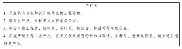 10.生物醫(yī)藥。著力提高生物醫(yī)藥產(chǎn)業(yè)的整體科技含量和附加值,重點(diǎn)開(kāi)發(fā)一批創(chuàng)新藥物,培育壯大生物醫(yī)藥產(chǎn)業(yè),提高醫(yī)藥產(chǎn)業(yè)競(jìng)爭(zhēng)力。著力打造哈爾濱—大慶—牡丹江生物醫(yī)藥產(chǎn)業(yè)集群。采用先進(jìn)適用的生物工程技術(shù),改造傳統(tǒng)化學(xué)制藥、中成藥和生化制藥產(chǎn)業(yè)。開(kāi)發(fā)特色原料藥新品種,注重產(chǎn)品系列化,延伸產(chǎn)業(yè)鏈條,擴(kuò)大國(guó)內(nèi)市場(chǎng)份額。依托哈藥集團(tuán)、葵花藥業(yè)、譽(yù)衡藥業(yè)、大慶福瑞邦藥業(yè)、珍寶島藥業(yè)、友搏藥業(yè)等骨干企業(yè),加強(qiáng)生物技術(shù)藥物的研究,開(kāi)發(fā)具有自主知識(shí)產(chǎn)權(quán)的生物工程藥物,促進(jìn)生物技術(shù)藥物產(chǎn)業(yè)化和中藥現(xiàn)代化。發(fā)展新型抗肝炎、結(jié)核等重大傳染病疫苗,基因生物工程藥、抗體藥、多肽藥等生物技術(shù)藥研發(fā),抗病毒、抗耐菌等生物藥品以及中藥新藥提取精制。推廣先進(jìn)的提取純化技術(shù),實(shí)施傳統(tǒng)中藥二次開(kāi)發(fā),重點(diǎn)發(fā)展雙黃蓮粉針和口服液、護(hù)肝片、清開(kāi)靈顆粒、疏血通注射液等具有市場(chǎng)競(jìng)爭(zhēng)力的產(chǎn)品。
