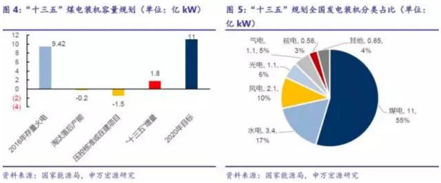 根據(jù)《電力發(fā)展“十三五”規(guī)劃》,“十三五”期間將力爭(zhēng)淘汰火電落后產(chǎn)能2000萬(wàn)kW以上,取消和推遲煤電建設(shè)項(xiàng)目1.5億kW以上,到2020年全國(guó)煤電裝機(jī)力爭(zhēng)控制在11億kW以內(nèi),由2016年底57%的占比降至約55%。