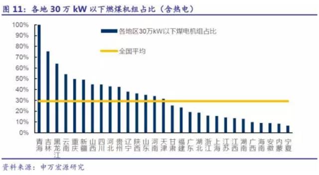 特高壓集中建成疊加大氣十條考核期到限,有望加快跨區(qū)輸電落地端小火電淘汰。從綜合能源基地建設(shè)及外輸電力通道的規(guī)劃看,十三五期間,主要的電力外輸區(qū)域為內(nèi)蒙古、山西以及其他西北、東北、西南地區(qū)。輸電通道的主要落地端以京津冀、華東、華南等環(huán)??己酥攸c地區(qū)為主。特高壓在十三五期間集中建成后,在當期的電力供需背景下,落地端電力存在消納問題。2017年是大氣污染防治行動計劃的考核年。我們認為,特高壓輸電消納及環(huán)保的壓力將加快落地端小火電機組的淘汰,據(jù)統(tǒng)計落地端省份30萬kW以下機組占比平均值20%。
