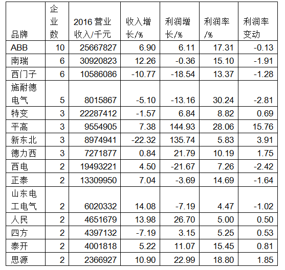 在營收的增速榜上,山東電工電氣、人民分別以14.08%、13.98%領(lǐng)先,南瑞、思源2品牌的增速也超過10%,而新東北、西門子、四方3品牌出現(xiàn)了較大幅度的下降。