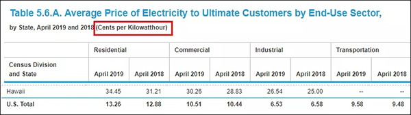 據(jù)觀察者網(wǎng)查詢的美國能源信息署(EIA)官方網(wǎng)站相關(guān)信息,其于4月份公布的最新數(shù)據(jù)顯示,美國居民用電的平均價格折合人民幣9毛錢,商業(yè)用電7毛錢,而夏威夷的居民用電一度電高達2元錢;