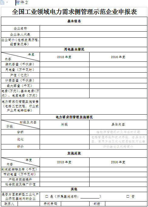 2:2017年全國工業(yè)領(lǐng)域電力需求側(cè)管理示范企業(yè)、示范園區(qū)申報表