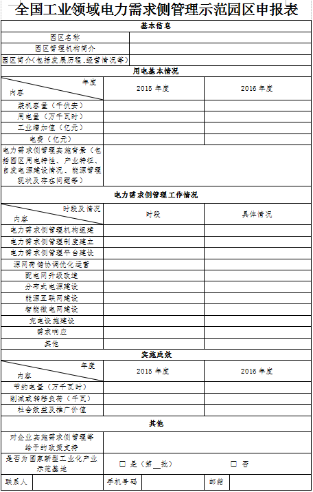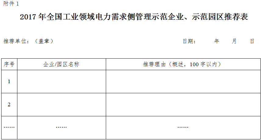 附件:1:2017年全國工業(yè)領(lǐng)域電力需求側(cè)管理示范企業(yè)、示范園區(qū)推薦表