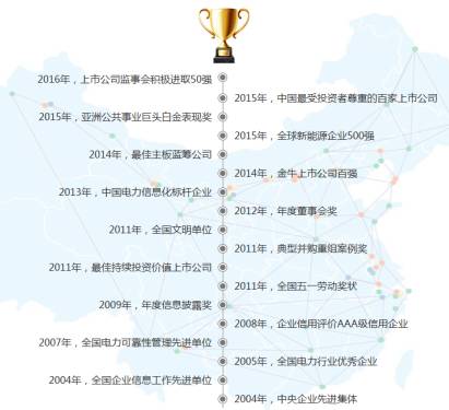 國電電力連續(xù)多年被評為最具發(fā)展?jié)摿ι鲜泄?,先后入選上證50指數(shù)和滬深300指數(shù),保持著國內(nèi) A 股證券市場綜合指標(biāo)名列前茅的績優(yōu)藍(lán)籌股地位。國電電力先后獲得企業(yè)信用評價AAA級信用企業(yè)、年度信息披露獎、最佳持續(xù)投資價值上市公司、最佳主板藍(lán)籌公司、中國最受投資者尊重的百家上市公司等獎項(xiàng)。