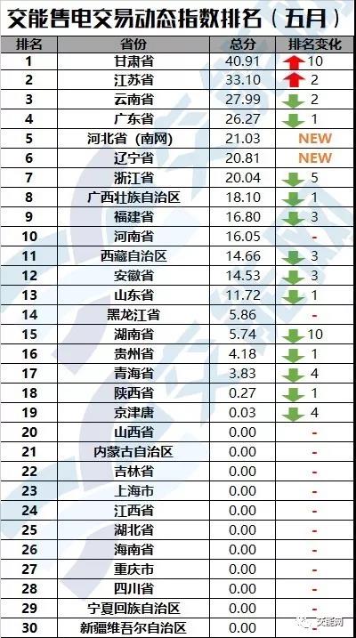 近幾個(gè)月來(lái),不斷有新的地區(qū)開啟了今年的電力市場(chǎng)化交易,高企的交易量通常能夠讓新入場(chǎng)的省份躋身前幾名。根據(jù)交能網(wǎng)對(duì)4月份全國(guó)市場(chǎng)化電量交易的評(píng)估,甘肅省以40.91分的高分成為當(dāng)月交易相對(duì)最活躍的省份。具體的排名如下: