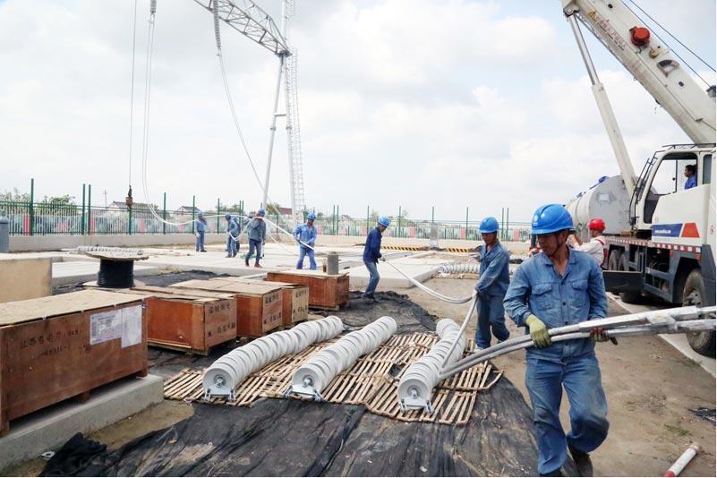 【背景】9月19日,在長三角城市群—江蘇東臺地區(qū)新建的220千伏潤元變電站施工現(xiàn)場,電力施工人員搶抓金秋施工黃金時期,緊張安裝220千伏軟