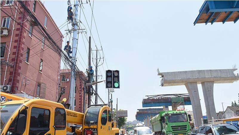 當天上午,施工人員在停電前做好各項準備工作,在老舊線旁新立電桿、新放線路電纜,并及時拆除老舊設備。停電施工期間,市南供電公司還對沿線各路口的交通信號燈提供了臨時應急供電,確保交通主干道虹梅南路道路通暢。