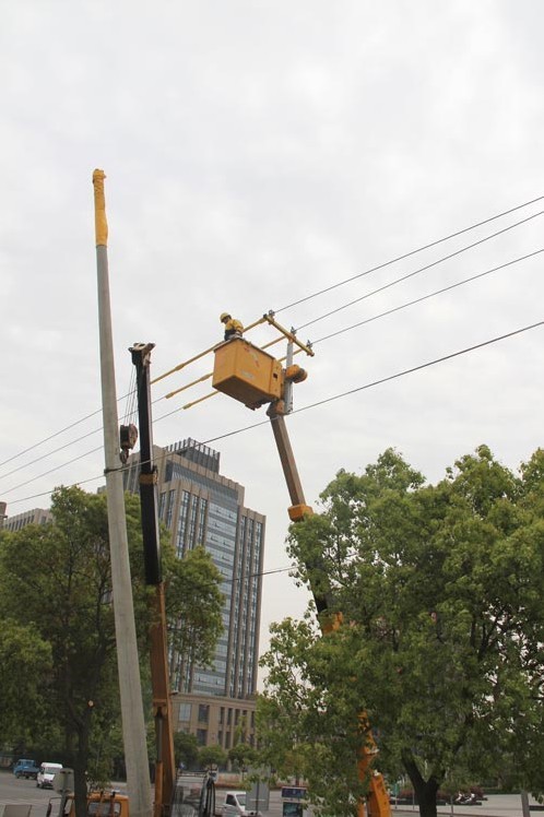 4月18日,在嘉興國(guó)際商務(wù)區(qū)廣益路和慶豐路丁字路段,嘉興電力局帶電作業(yè)中心的工作人員正在為新建道路慶豐路往南延伸段的開(kāi)通進(jìn)行架空線路的遷移,由于該線路是國(guó)際商務(wù)區(qū)的主干線,停電作業(yè)會(huì)直接影響企業(yè)及周