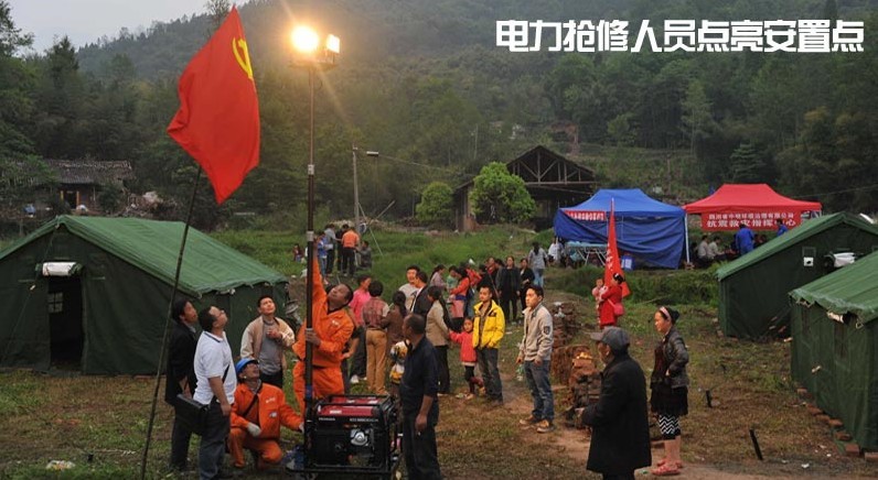 4月21日,為了給四川省蘆山縣龍門鄉(xiāng)各重要臨時安置點送電,電力搶修人員爭分奪秒地穿梭在沿途各安置點上,用責任與汗水為受災群眾送去光明,點亮希望。