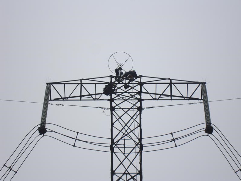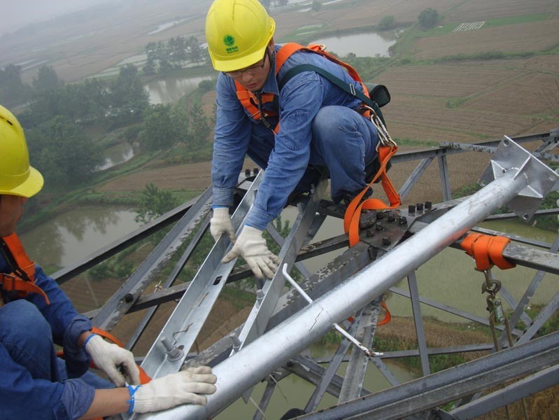 2013年6月2日,在安徽省定遠(yuǎn)縣倉鎮(zhèn)北鄭村,二名電力職工正在80多米的高空作業(yè),對(duì)500千伏淮南市洛(河)至滁州市清(流)5309輸電線路進(jìn)行維護(hù)、維護(hù)。當(dāng)日,安徽送變電工程公司組織100多名技術(shù)人員對(duì)500千伏洛