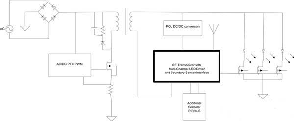 圖2:支持ZigBee、帶有ALS及PIR閉環(huán)控制的LED控制器