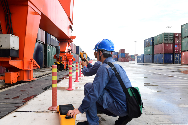 南方電網(wǎng)廣西電網(wǎng)公司工作人員給廣西欽州祥龍物流園的用電設(shè)備進行測溫。