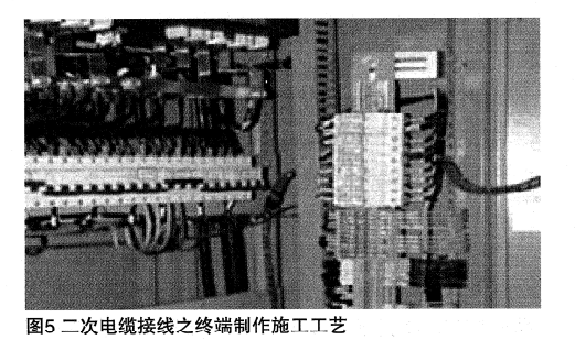 包括二次電纜就位工藝,二次電纜終端制作工藝,芯線整理、布置的詳細方法以及二次屯纜固定的施工工藝,如圖5所示。