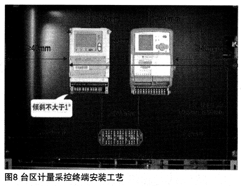 電能表、采控終端、接線盒的安裝固定工藝,互感器安裝工藝,元器件連接工藝,鉛封安裝工藝和CT二次電纜的安裝工藝。臺區(qū)計量采控終端安裝工藝如圖8所示。